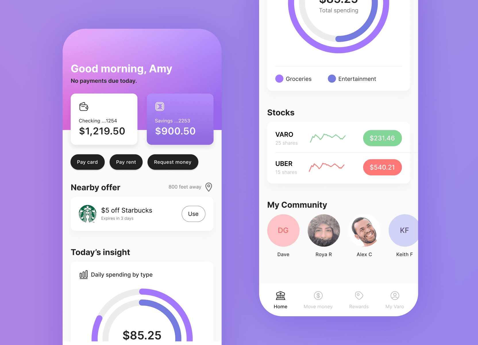 During our rebrand, I spearheaded an organization-wide realignment effort that redefined our goals, vision, product direction and cross-department execution strategy — bringing marketing and product together to craft an inspiring user interface and design language that resonates with Varo's vibrant customer base and promotes an optimistic view of the future.