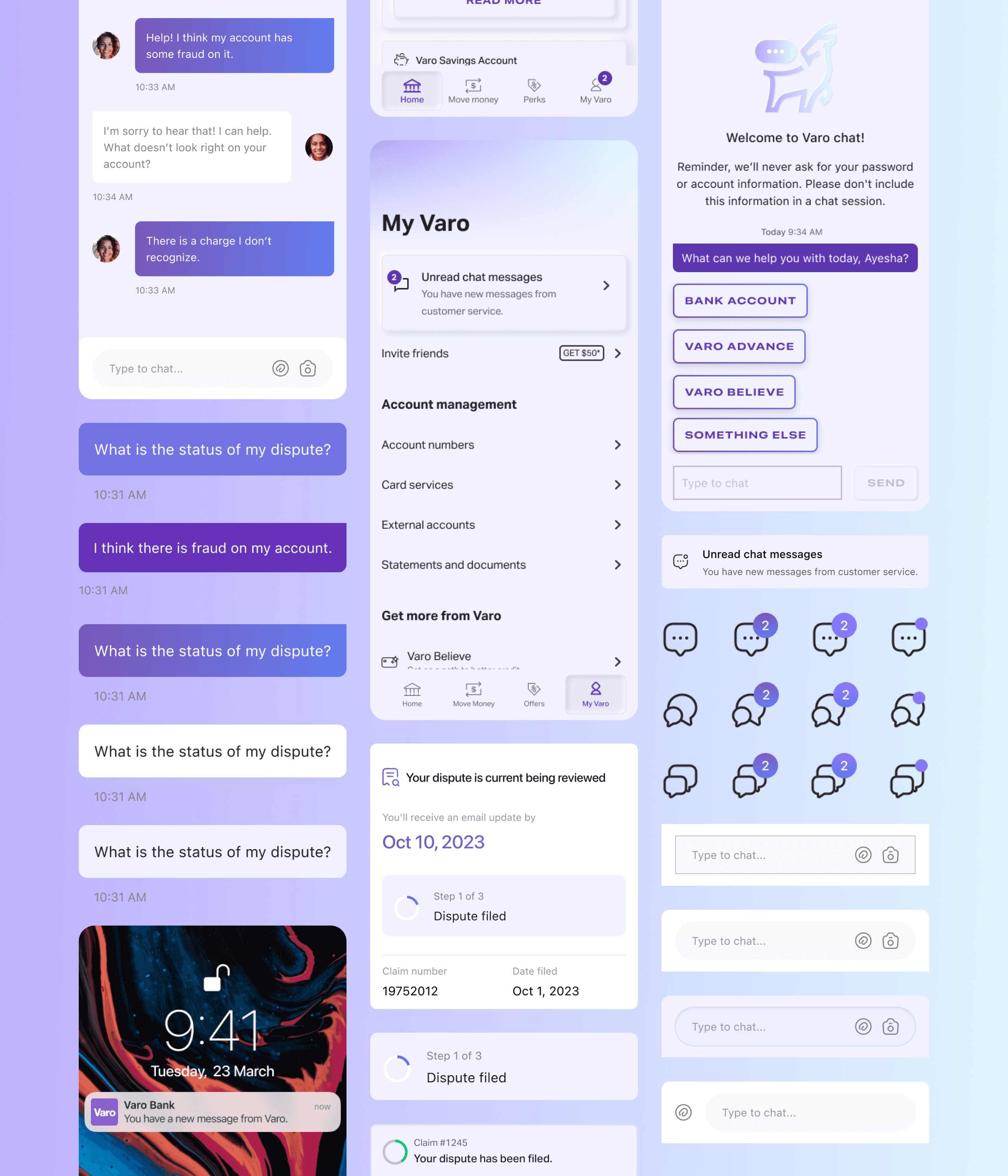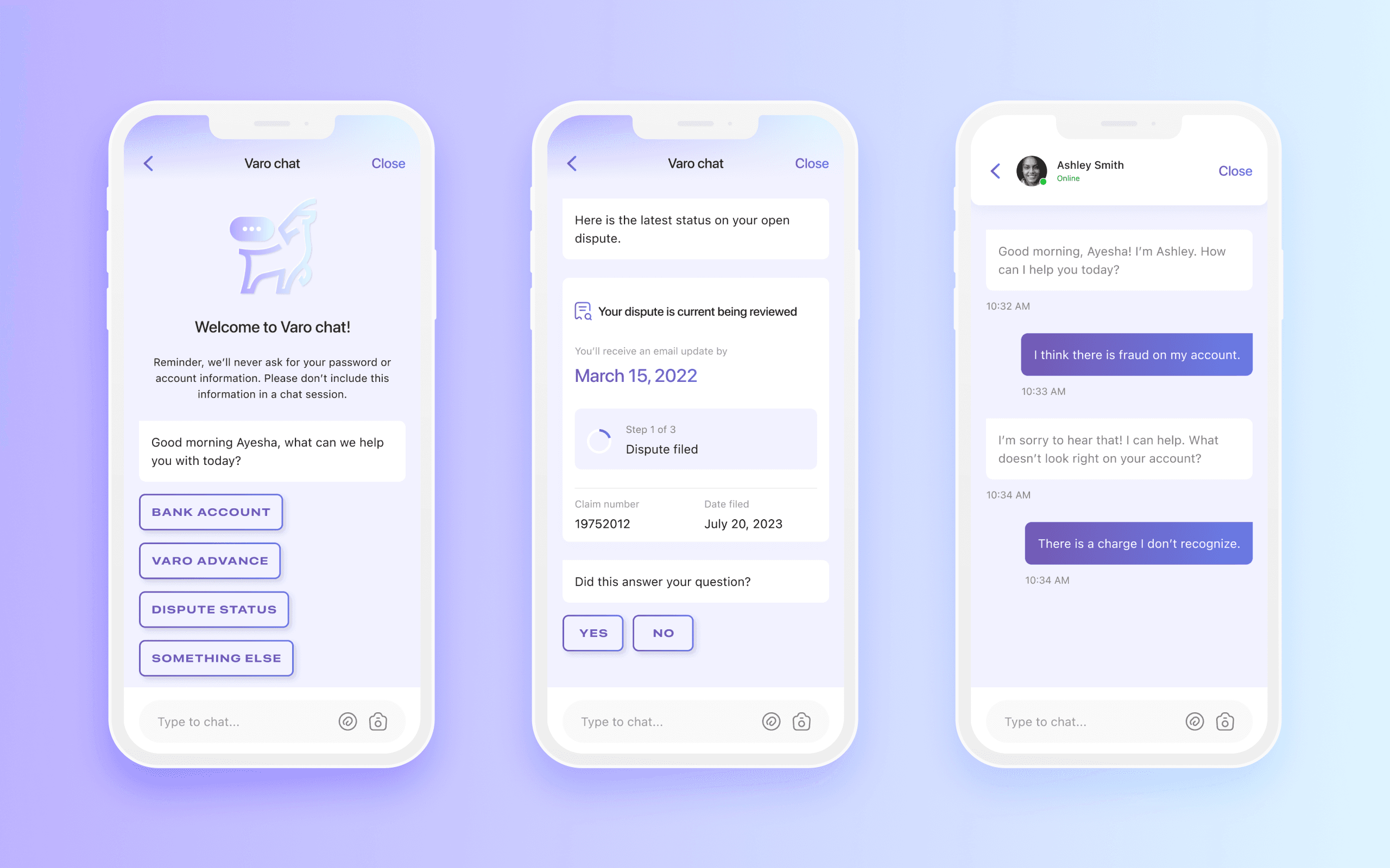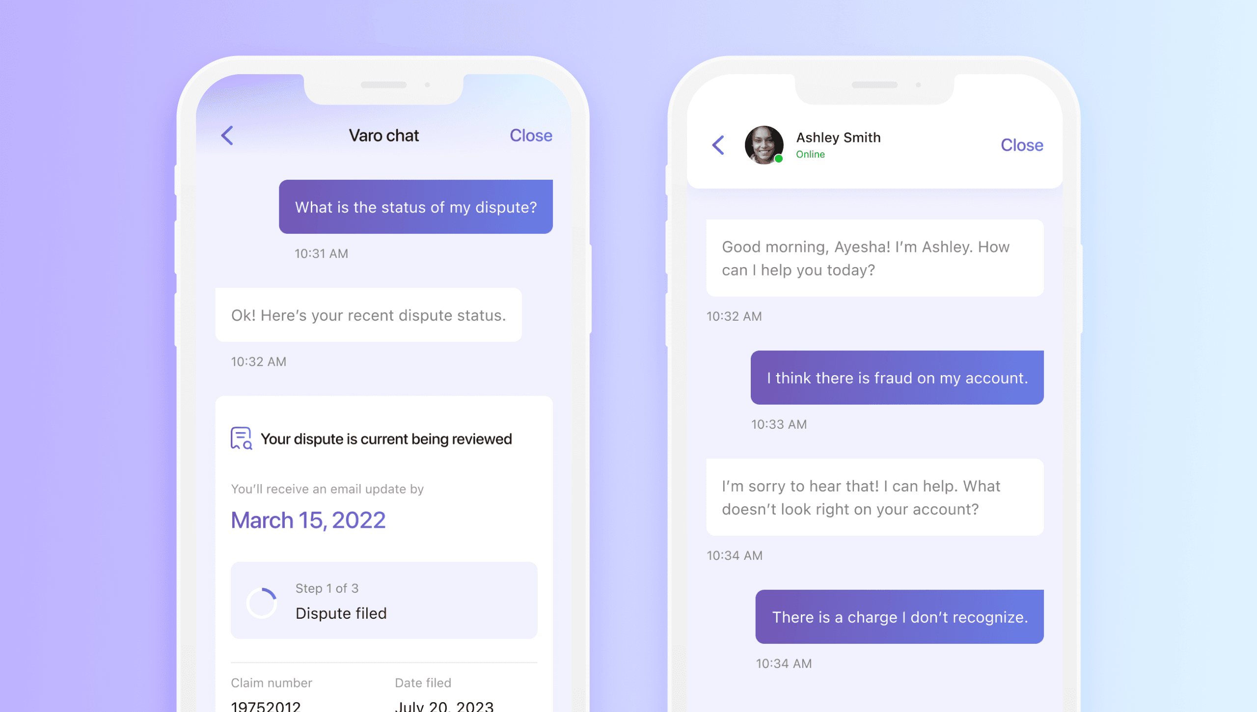 We set out to provide an unparalleled dispute resolution experience that sets crystal clear expectations and delivers confidence-boosting status updates, all conveniently accessible through a user-friendly searchable chat interface. This fosters lasting customer loyalty, as you can trust that Varo has got your back at all times.