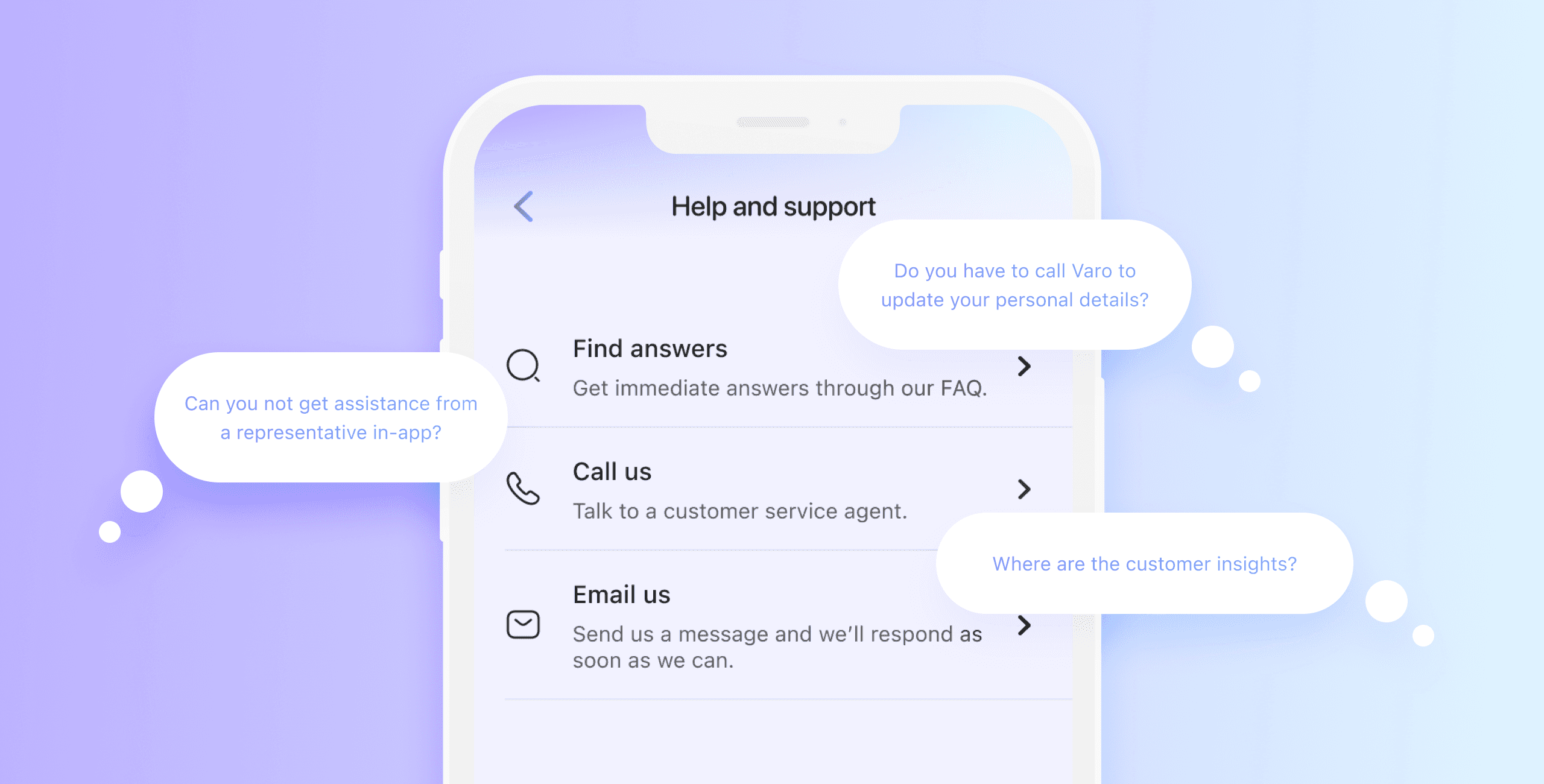 Because Varo is a digital-first bank, it has no physical locations to connect in-person. This increases the opportunity value of digital self-servicing capabilities.