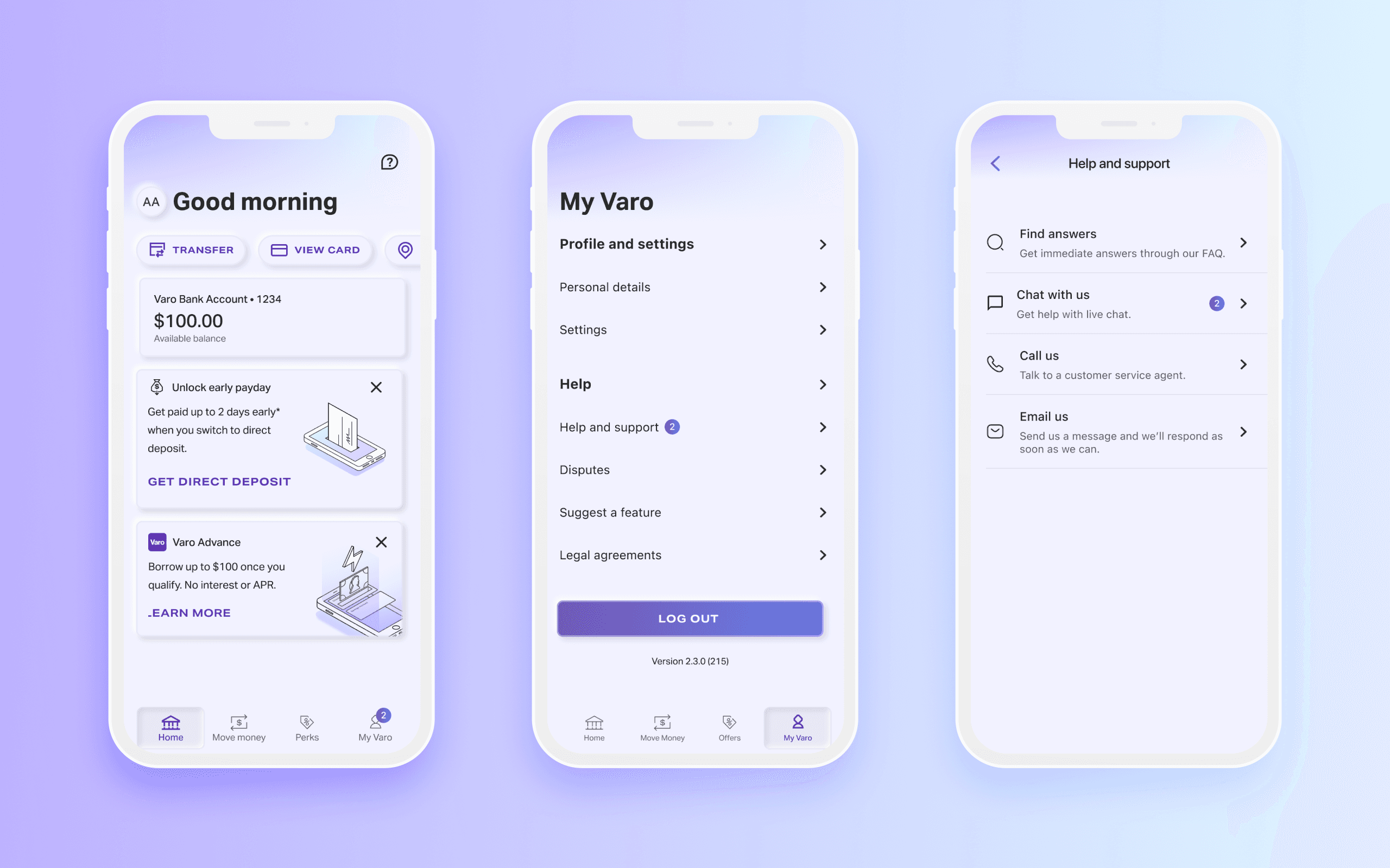Customers can find the Varo chat experience within the My Varo dashboard, under Help and support.