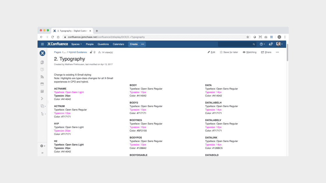 I created guideline documentation on Confluence to allow for easy access by all of Chase's digital product teams and stakeholders.