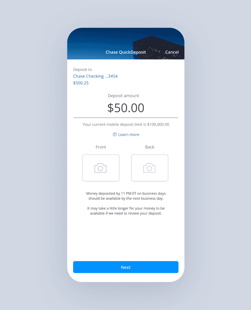 I played a key role in spearheading the design of the Chase Mobile® app's capture check functionality, empowering customers to effortlessly deposit checks with ease and convenience directly from their phone.
