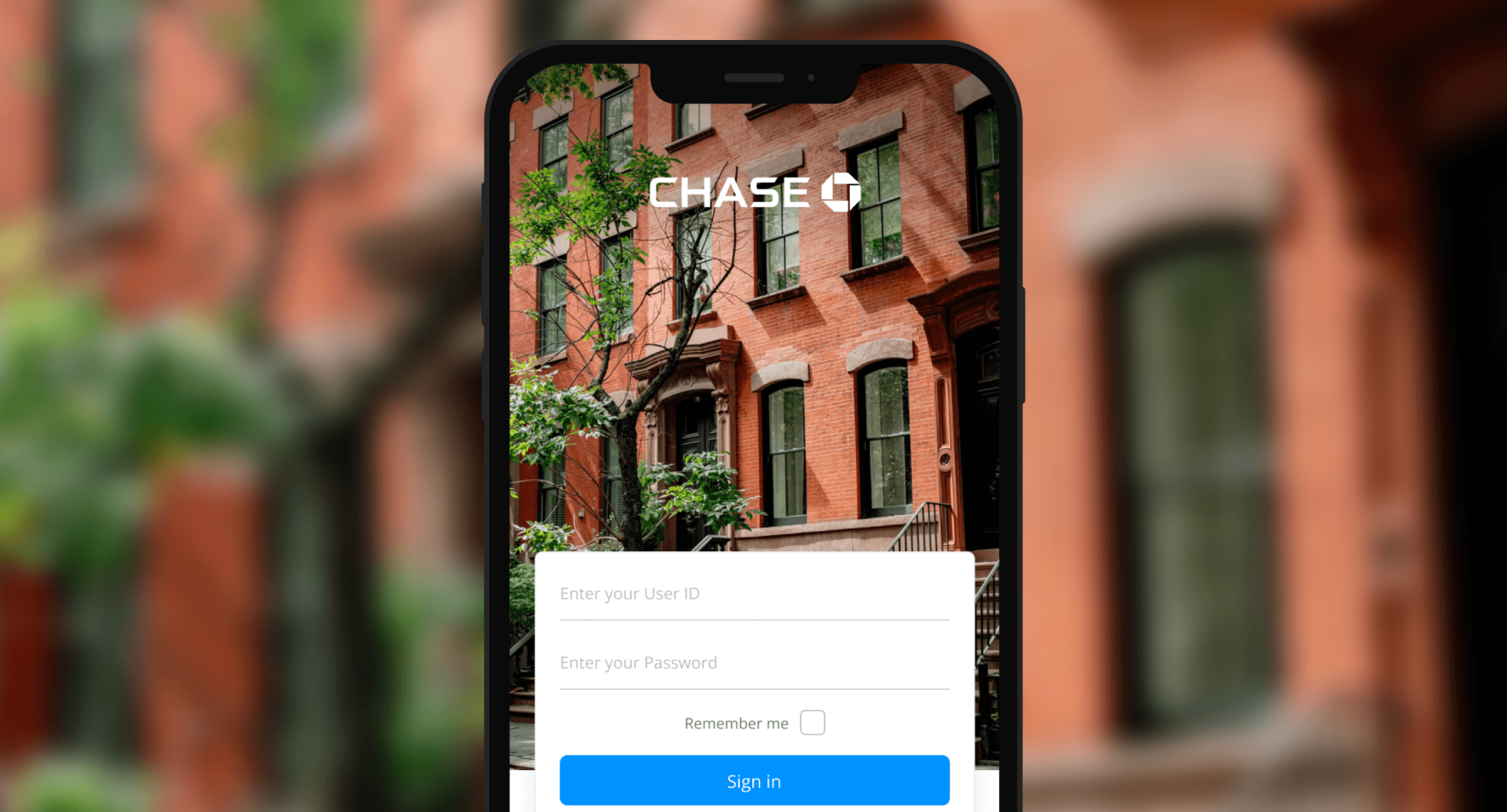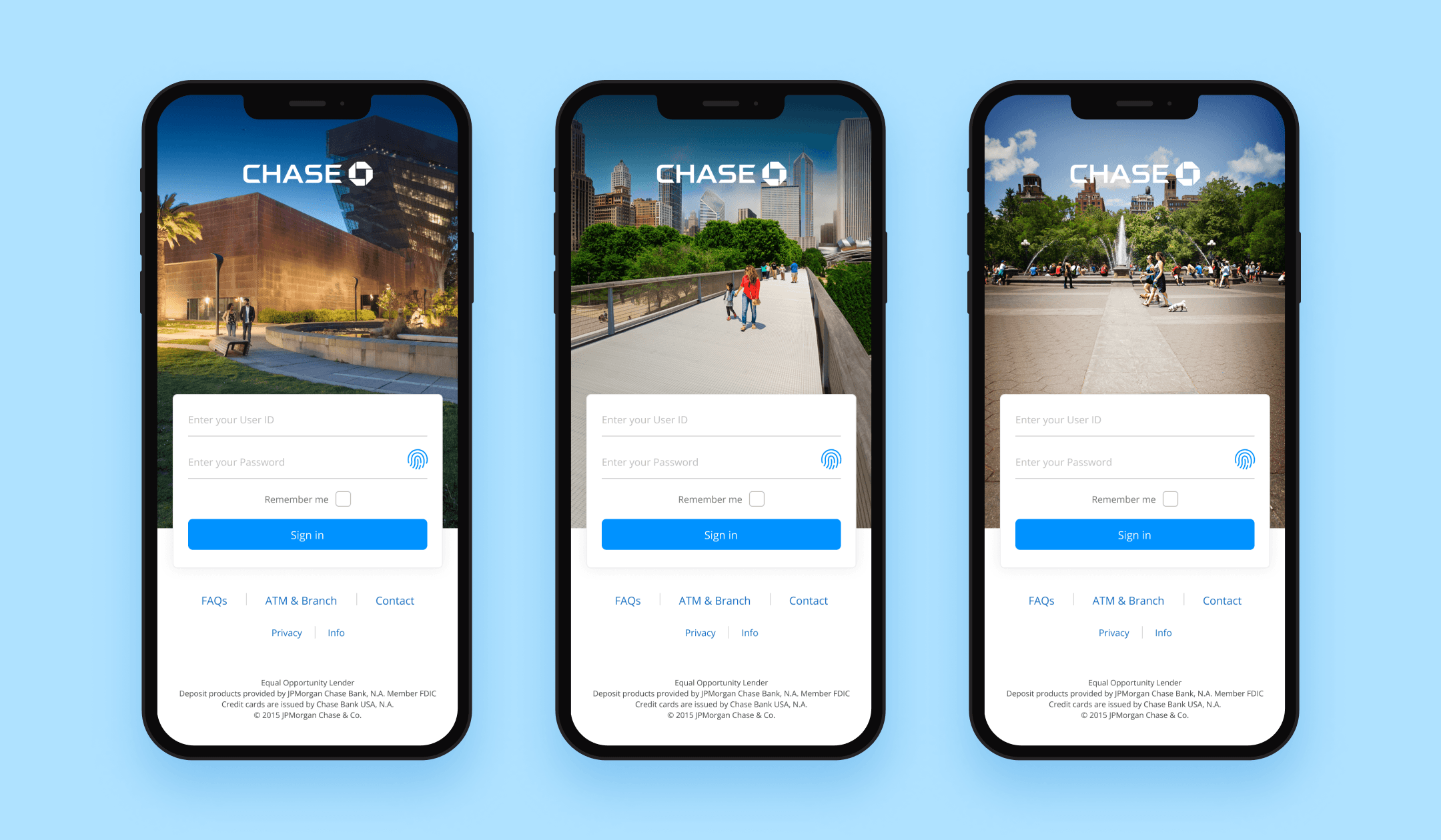 The Chase Mobile® app sign-in screen showcases distinctive metropolitan geolocated photography, providing users with a unique and relatable visual experience.