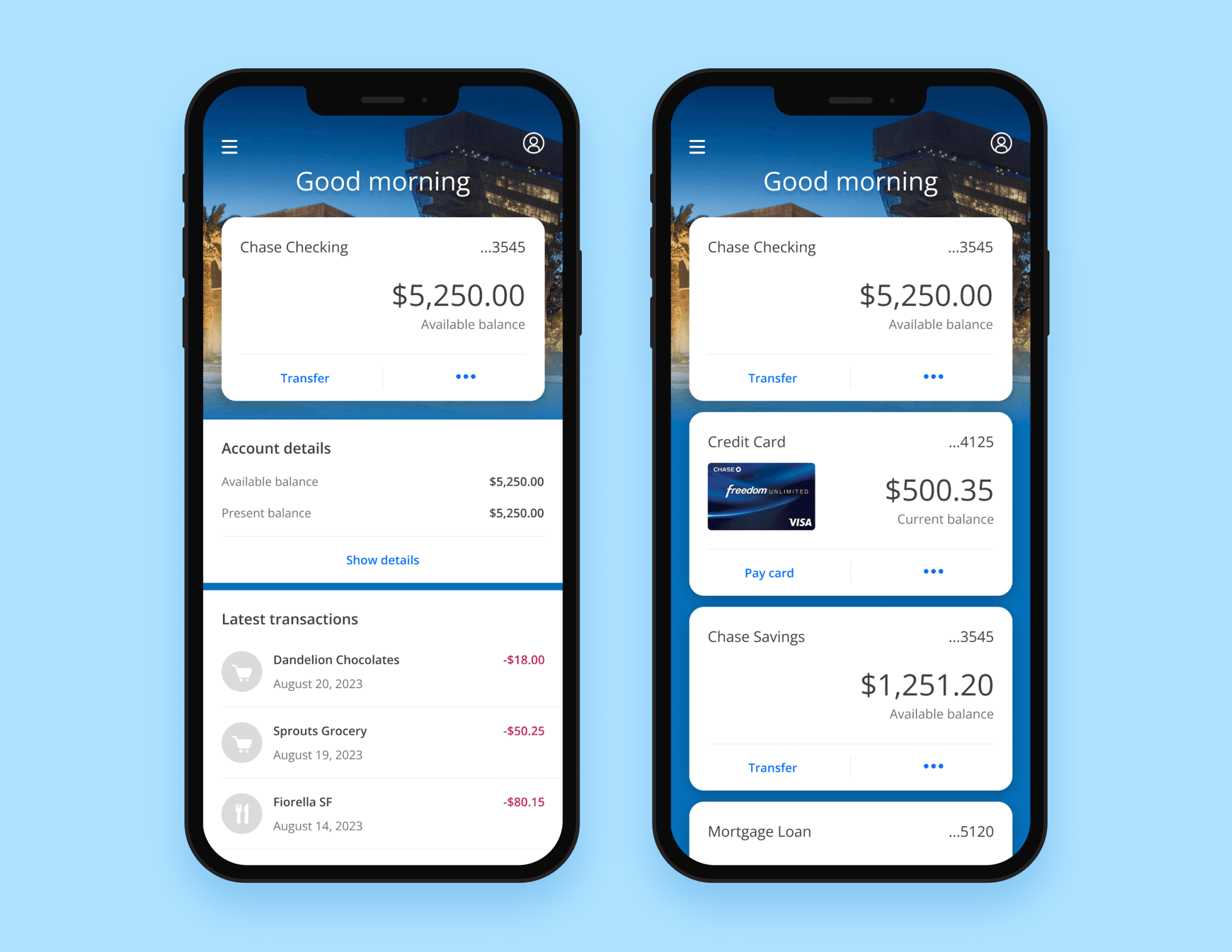 Meanwhile, customers with multiple accounts are presented with intuitive account cards, offering high-level, at-a-glance details for a comprehensive overview.