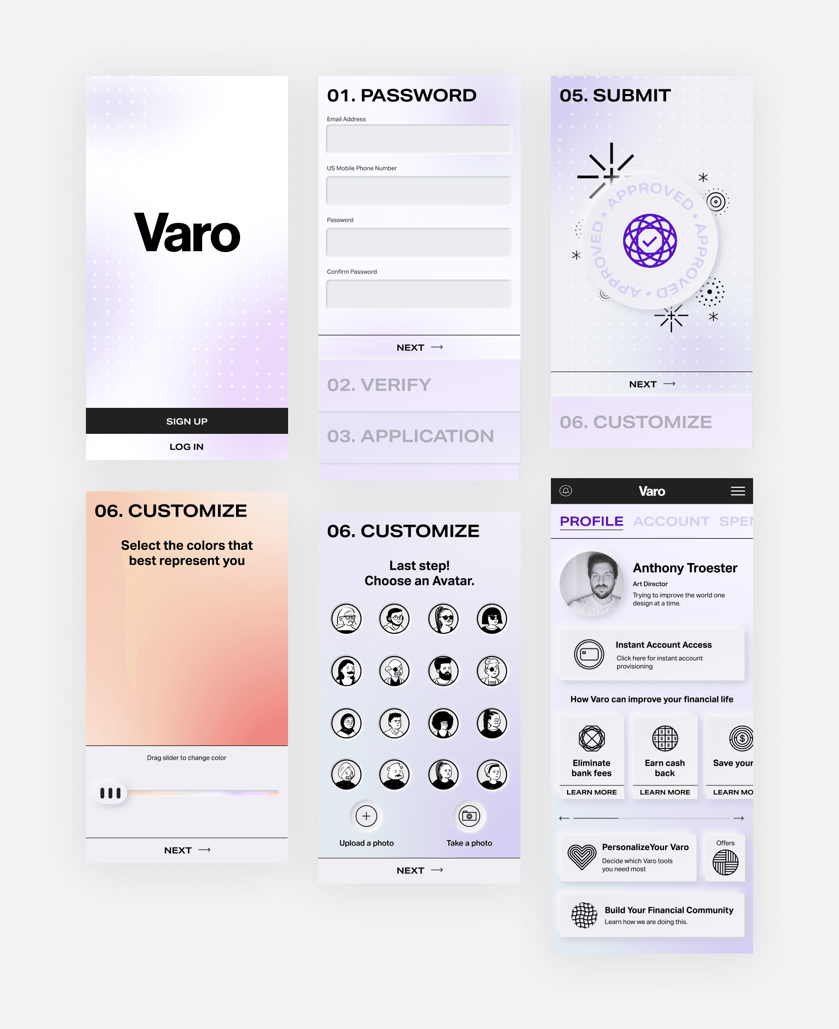 At Varo Bank, I led a redesign effort that involved both the product design team and marketing teams. Our two teams co-created a new design language and system influenced by Varo's unique customer base.