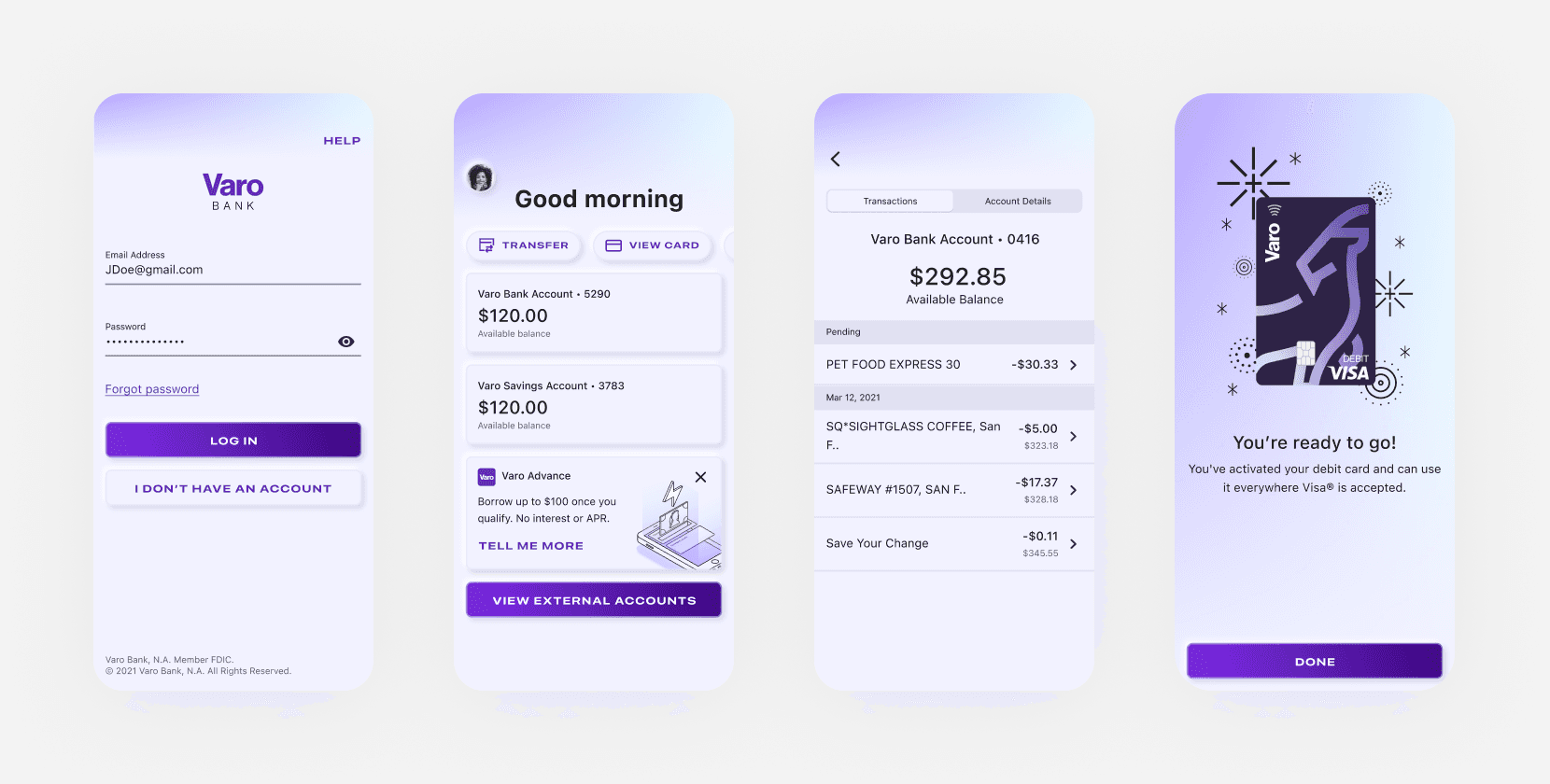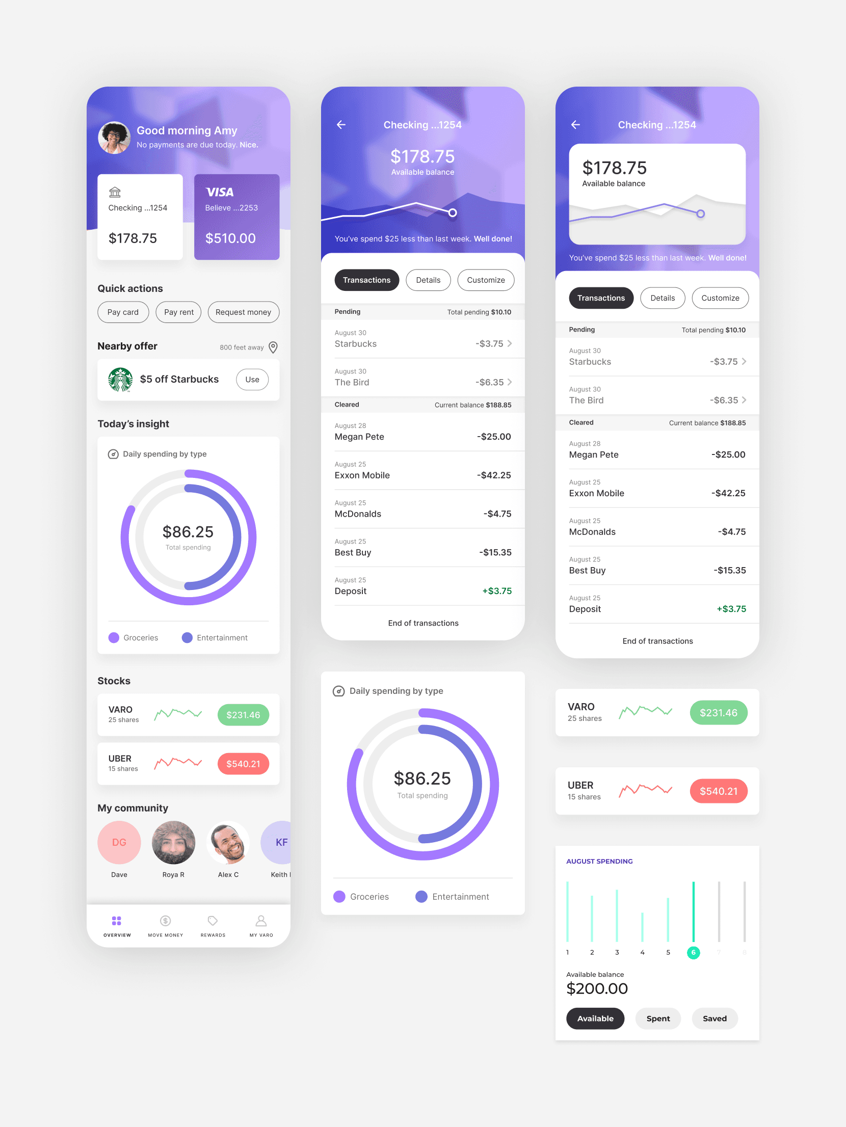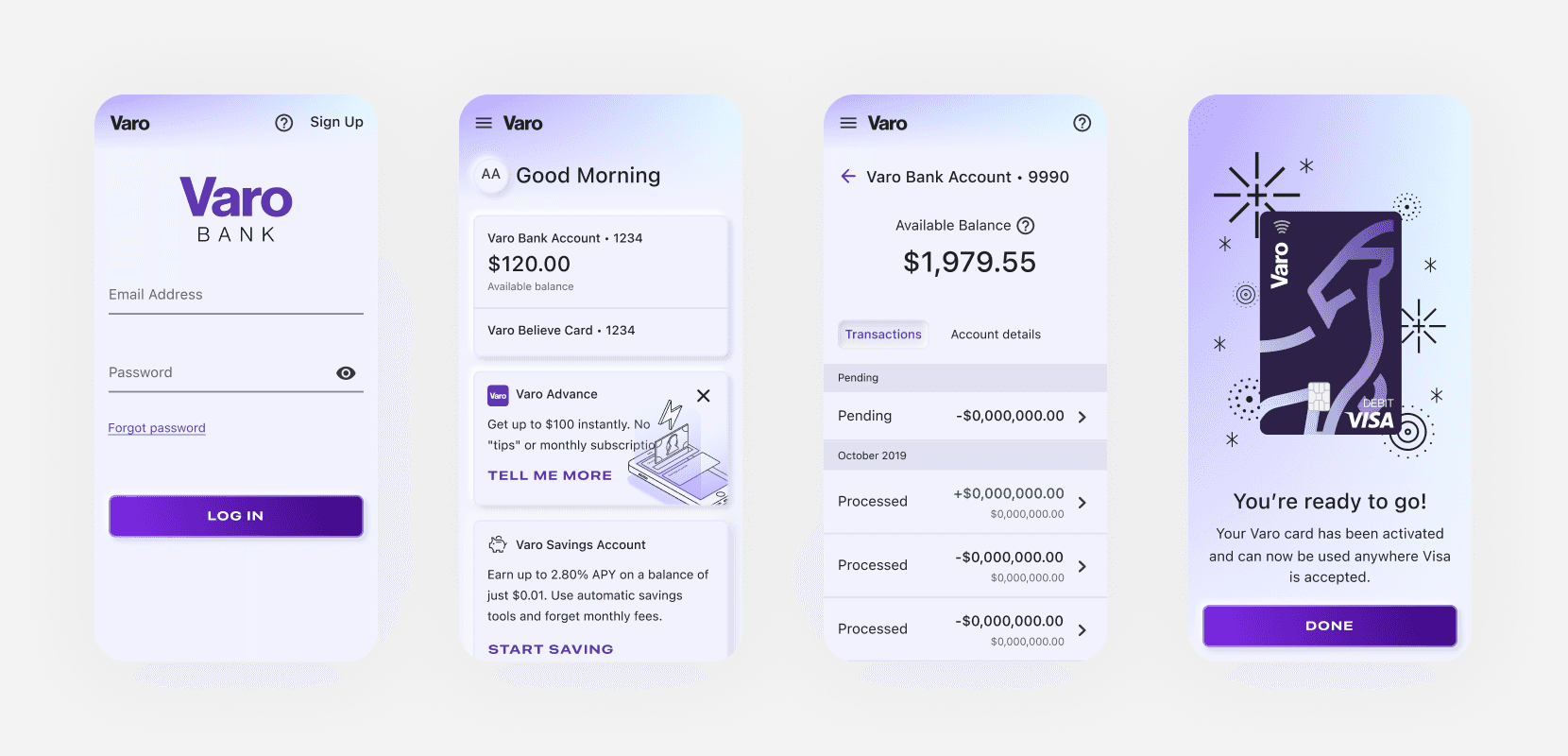 Our efforts culminated in an accelerated, successful delivery of a design language, system, as well as native and web experiences that reflected the vision of both design teams, and the brand values Varo stands for.