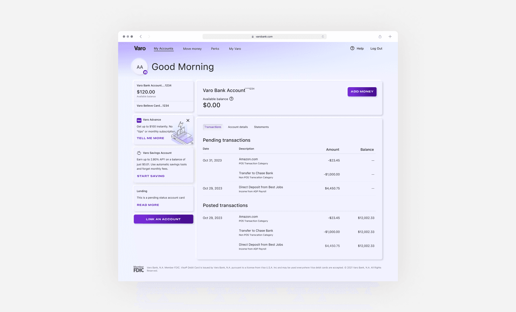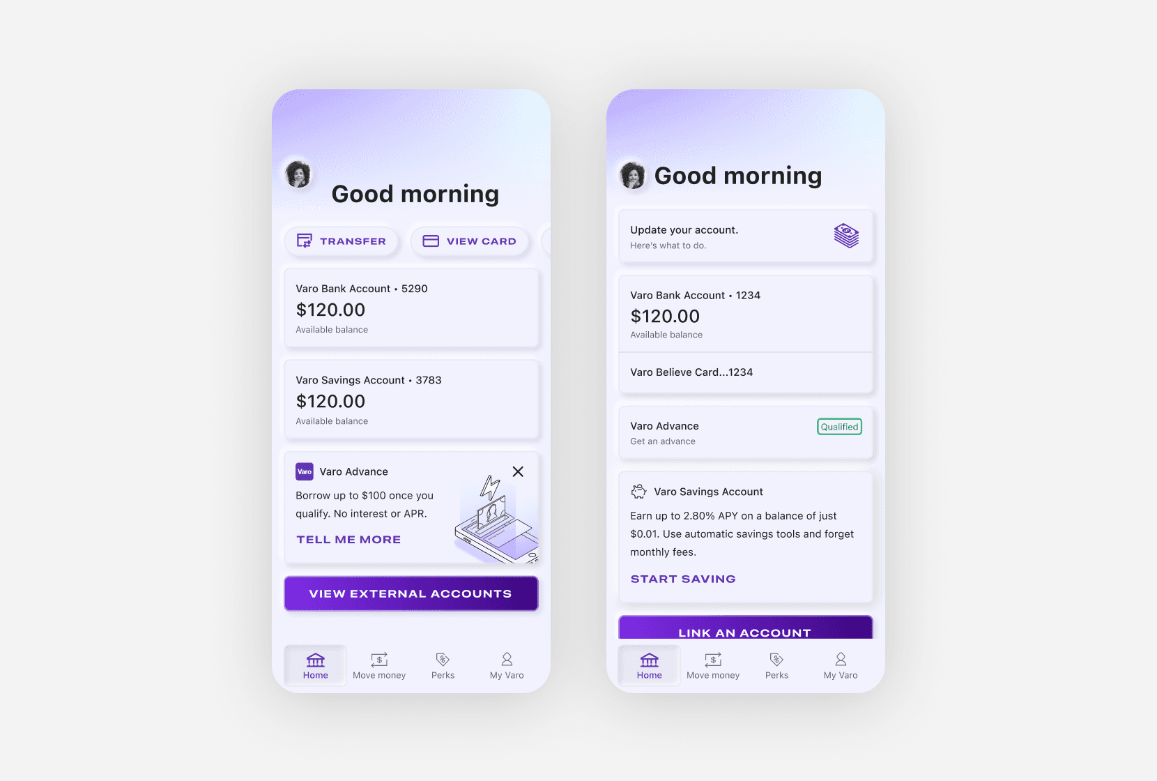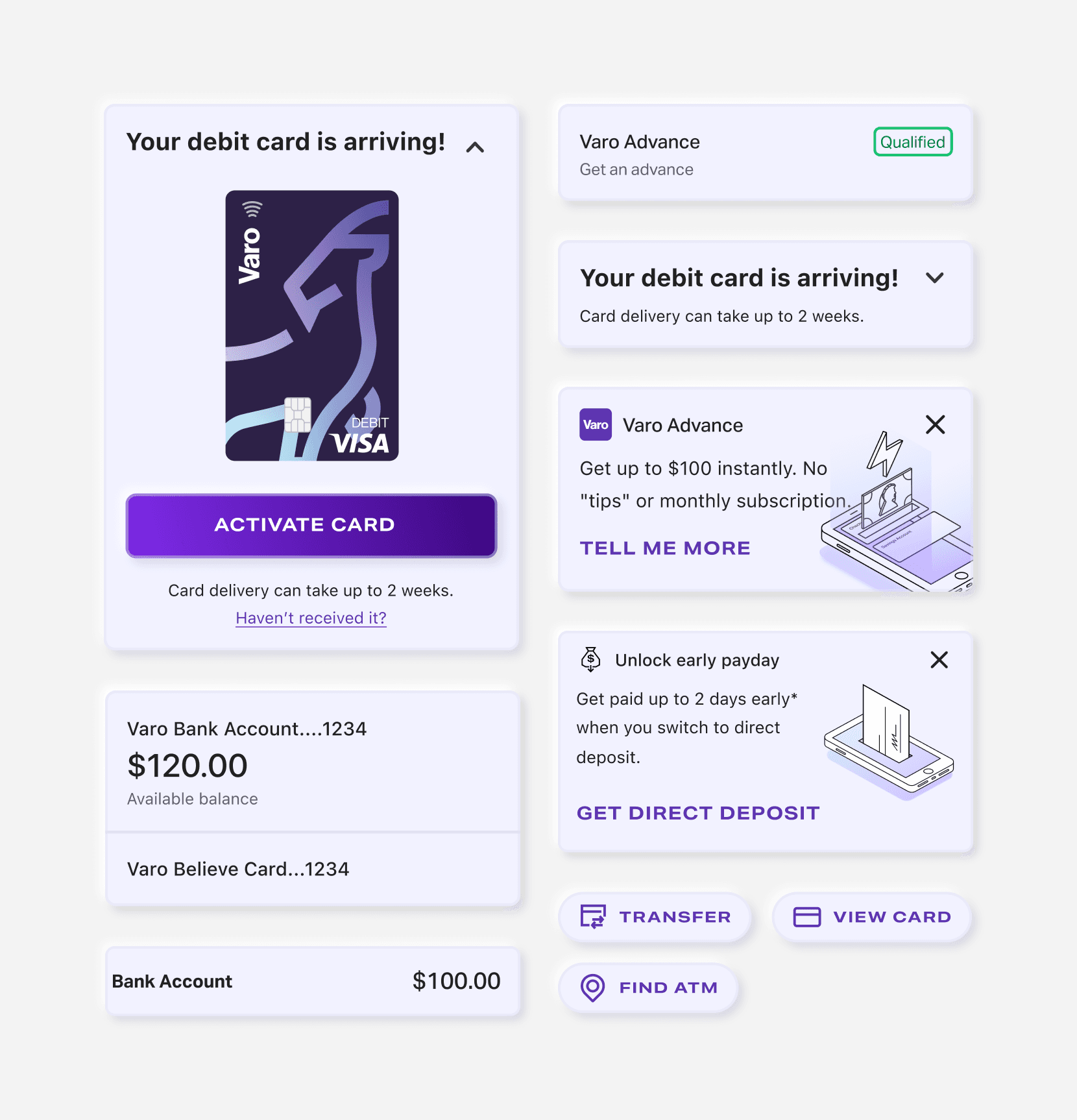 At Varo Bank, I led a redesign effort that brought two siloed teams together to produce a design language and system. Influenced by Varo's unique customer base, we sought to release an updated app and website that leveraged the skills each team brought to the table.